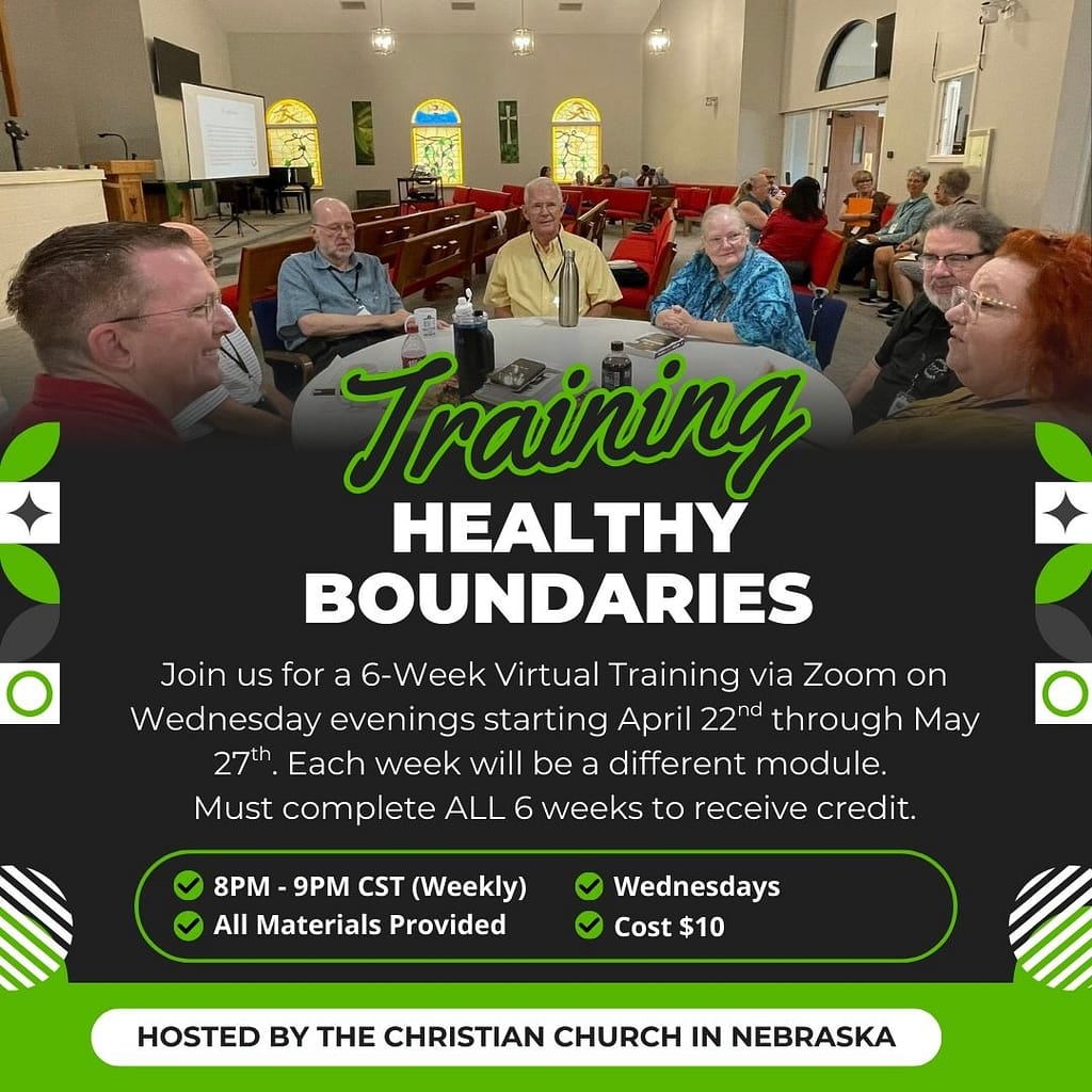 As of 2020 all active clergy, both ordained and commissioned, are required to complete six hours of Healthy Boundary Training for Clergy every three years. Approved training is provided by the Christian Church in Nebraska. Other options may be: courses offered by other Regions of the Christian Church (Disciples of Christ), member Communions/Denominations of the Churches Uniting in Christ, or trainings pre-approved by the Pastoral Leadership Commission on a case-by-case basis (please contact the Regional Minister directly, and be prepared to submit a full schedule and syllabus of the training).
