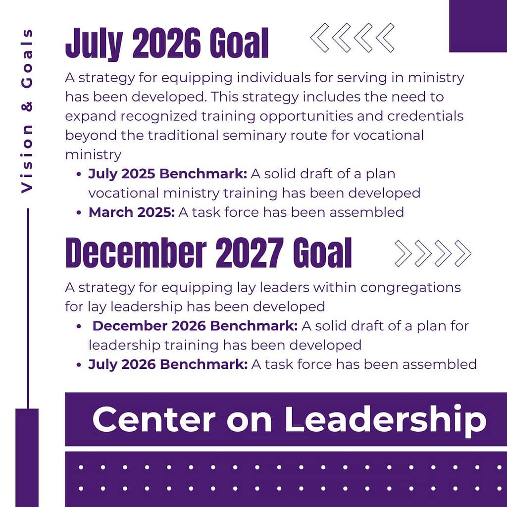 Purpose: To teach and witness to spiritual practices that enable leaders and emerging leaders to serve the people and the structures of the Local, Regional, and General Church.